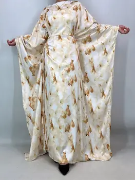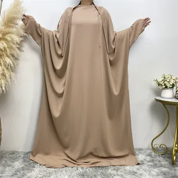 Muslim Women’s Satin Butterfly Abaya – Batwing Sleeve Maxi Dress, Elegant Kaftan & Robe Style Fashion