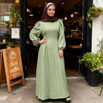 Shimmer Abaya for Muslim Women – Bishop Sleeve Maxi Dress, Dubai & Turkish Modest Ramadan Eid Outfits
