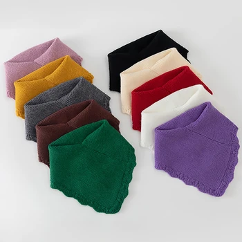 Winter Knitted Lace Ring Scarf – Warm Detachable Turtleneck Neck Warmer Triangle Shawl 29x26cm for Women