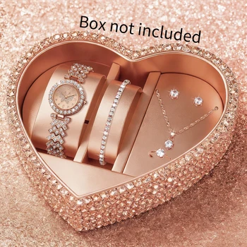 Luxury Rhinestone Women’s Quartz Watch Set – Elegant Steel Band Ladies Wristwatches, Diamond Jewelry Style Reloj Mujer (1/3PCS, Without Box)