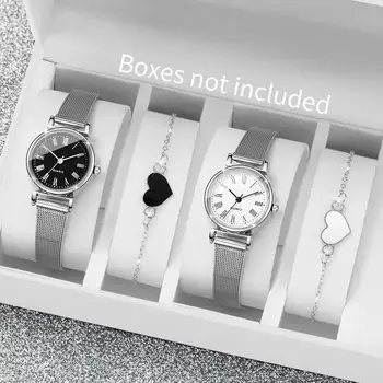 Fashion Women’s Quartz Watch Set – Simple Dial Alloy Band Ladies Wristwatches with Bracelet Accessories, Reloj Mujer Girls Clock Gift (4PCS, Without Box)