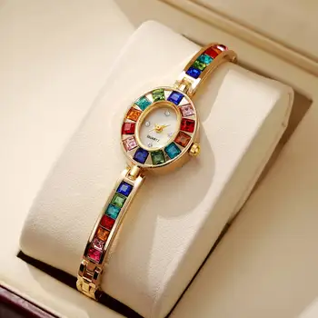 Luxury Rhinestone Women’s Quartz Watch – Fashion Roma Oval Dial Bracelet Strap Ladies Wristwatch, Reloj Mujer Clock Gift (Without Box)