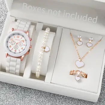 Fashion Women’s Quartz Watch Jewelry Set – Casual Silicone Band Ladies Wristwatches with Bracelet Accessories, Relogios Feminino Girls Clock Gift (5/6PCS, Without Box)