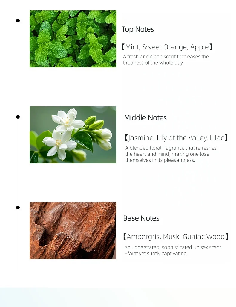 Base Notes:【Ambergris,Musk,Guaiac Wood】