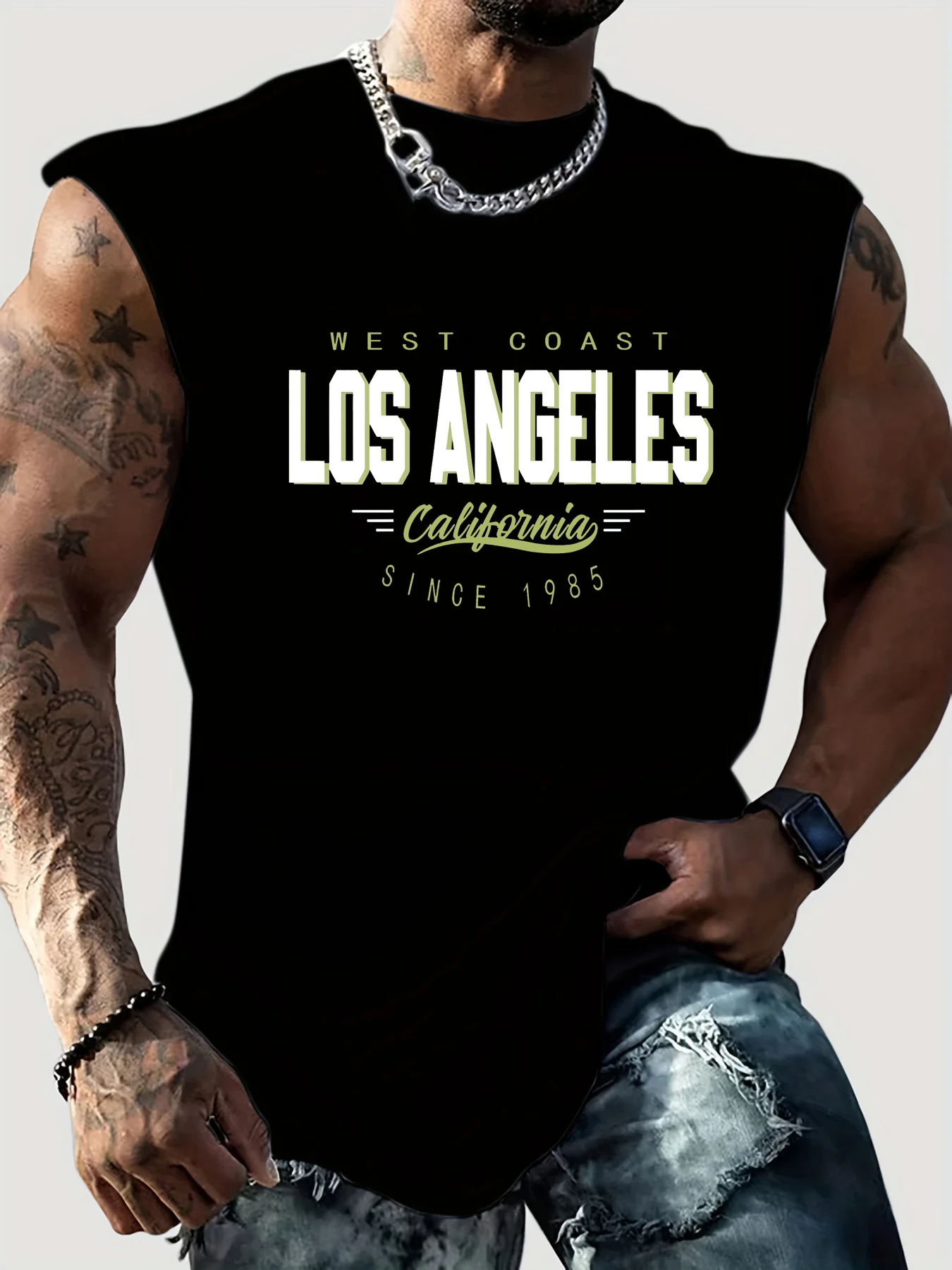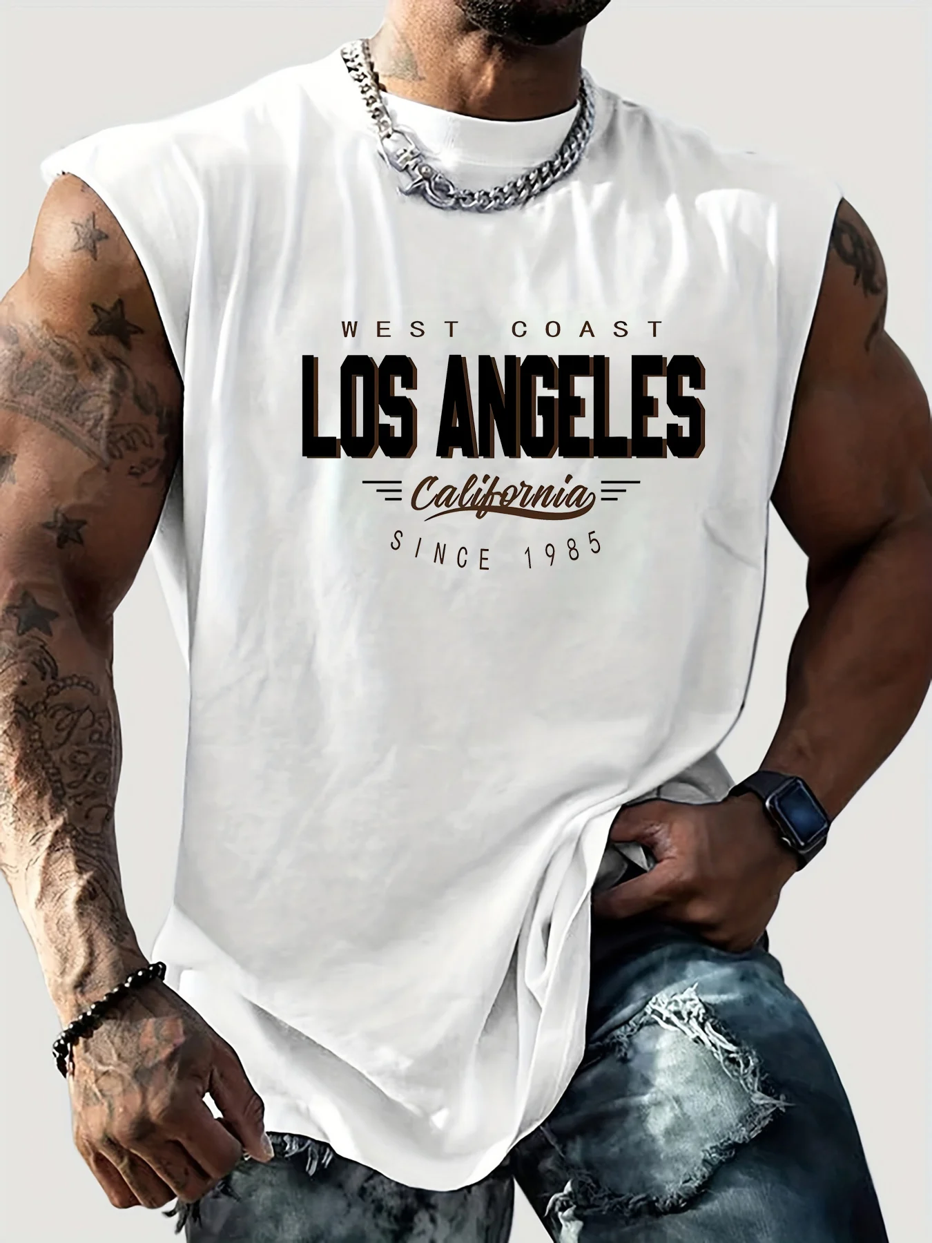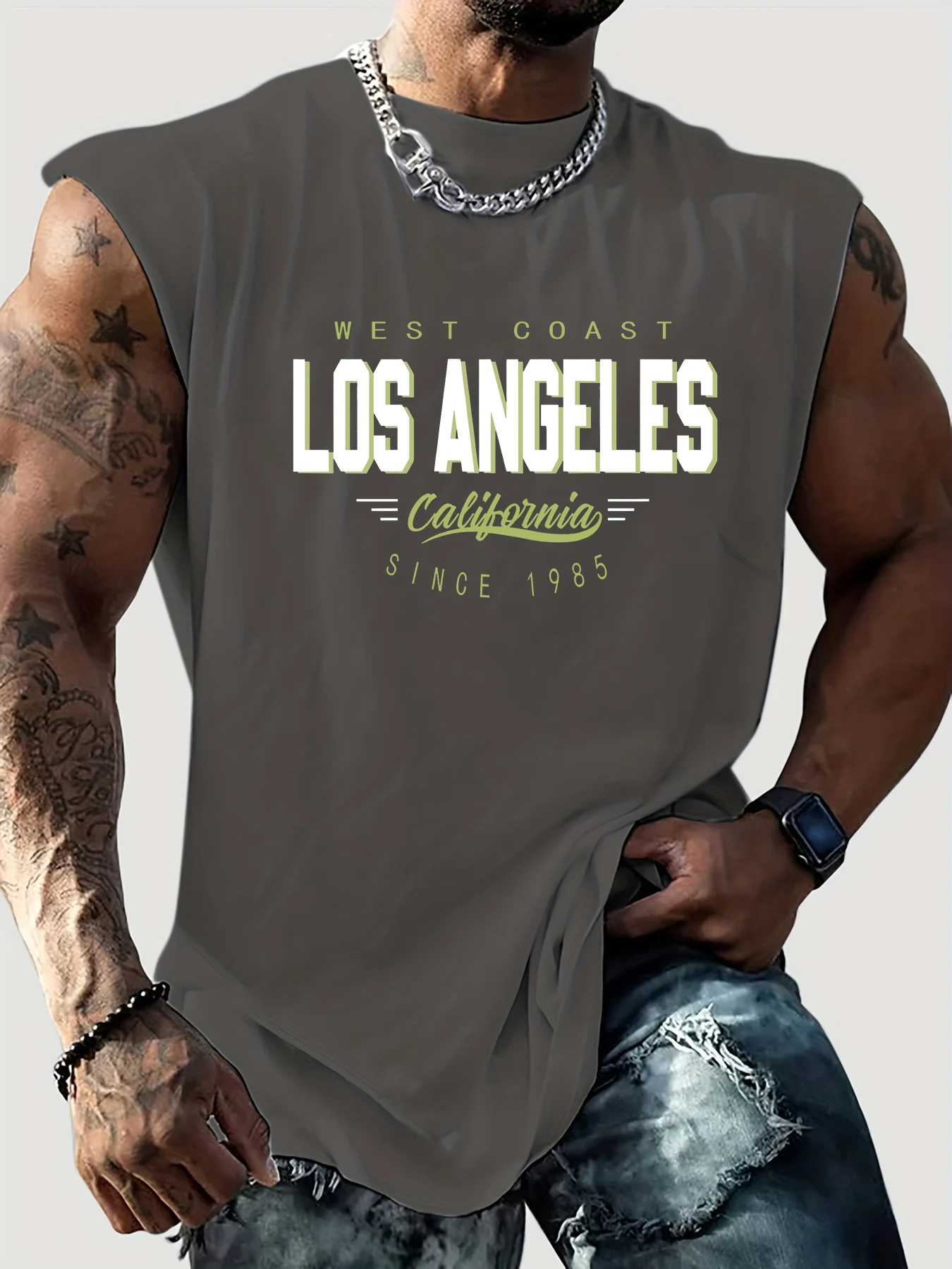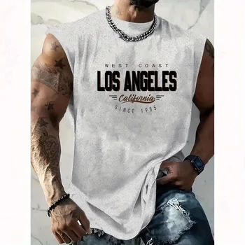 Men’s 100% Cotton Summer Tank Top – Los Angeles Print Loose Fit Casual Sports Sleeveless Round Neck Top